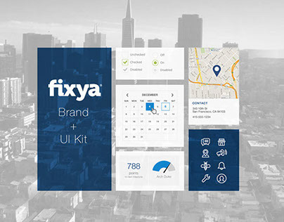 Outlines preliminary brand guidelines and UI elements for the Fixya brand.