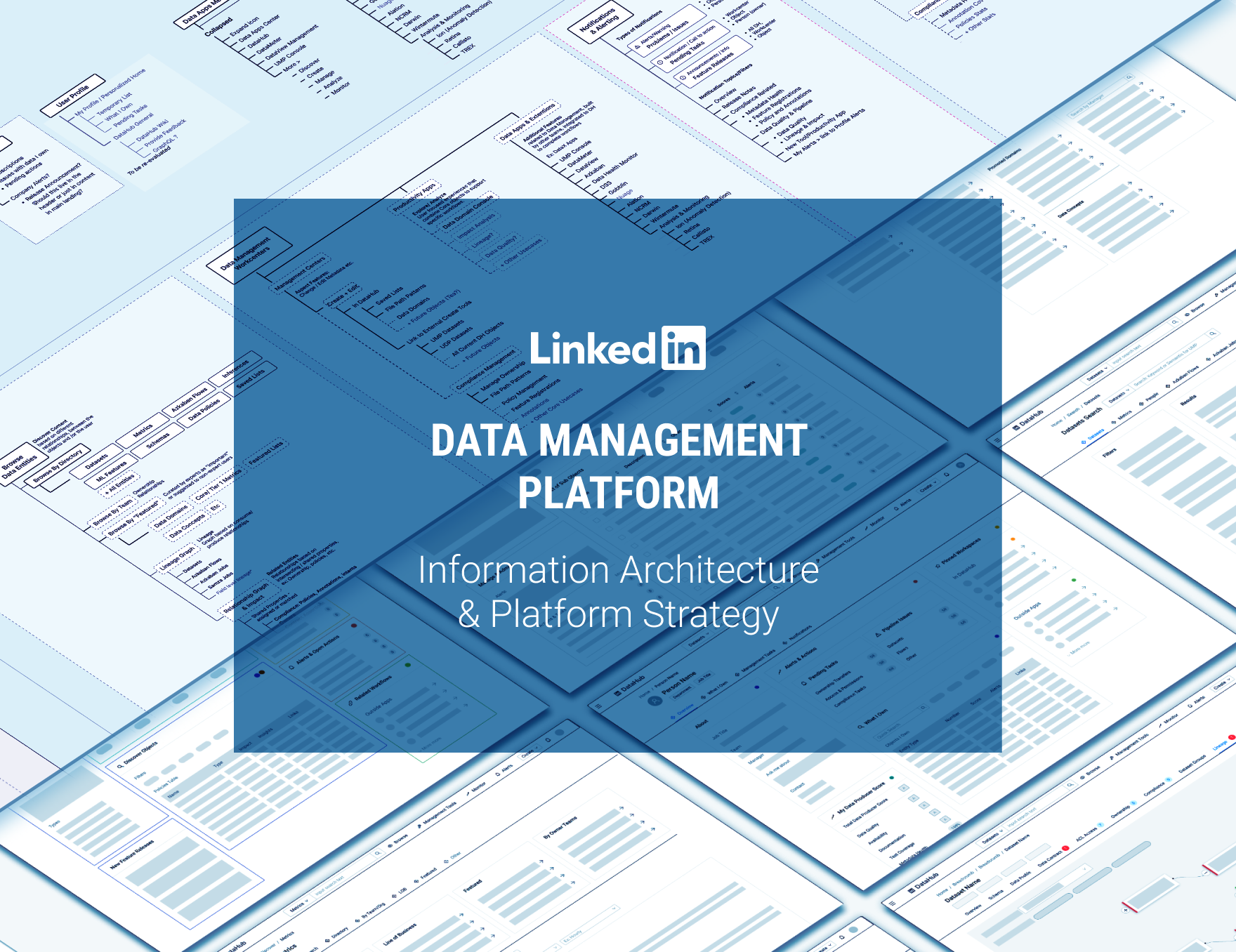 While mapping all the data apps at LinkedIn, I realized that many of the apps performed different types of tasks on the same types of objects. This revealed a pattern that all the apps followed similar patterns, even though their UIs looked totally different: